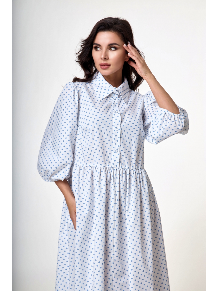 Платье рубашка свободного силуэта универсальный вариант для весеннее-летнего сезона. Длина по переду ниже колена, по спинке чуть длиннее. Рукав 3/4, на резинке. Классический рубашечный воротник и застежка на петли пуговицы по переду до линии талии. Платье отрезное по линии талии со сборкой по юбке. Карманы в боковых швах. Для обладательниц красивой пышной груди рекомендуем брать на размер больше, в нем вам будет комфортнее и так, как хлопок со временем может не много сесть, вы будете уверены, что платье не станет вам мало. А оверсайз остаётся актуальным всегда и визуально делает вас стройнее.