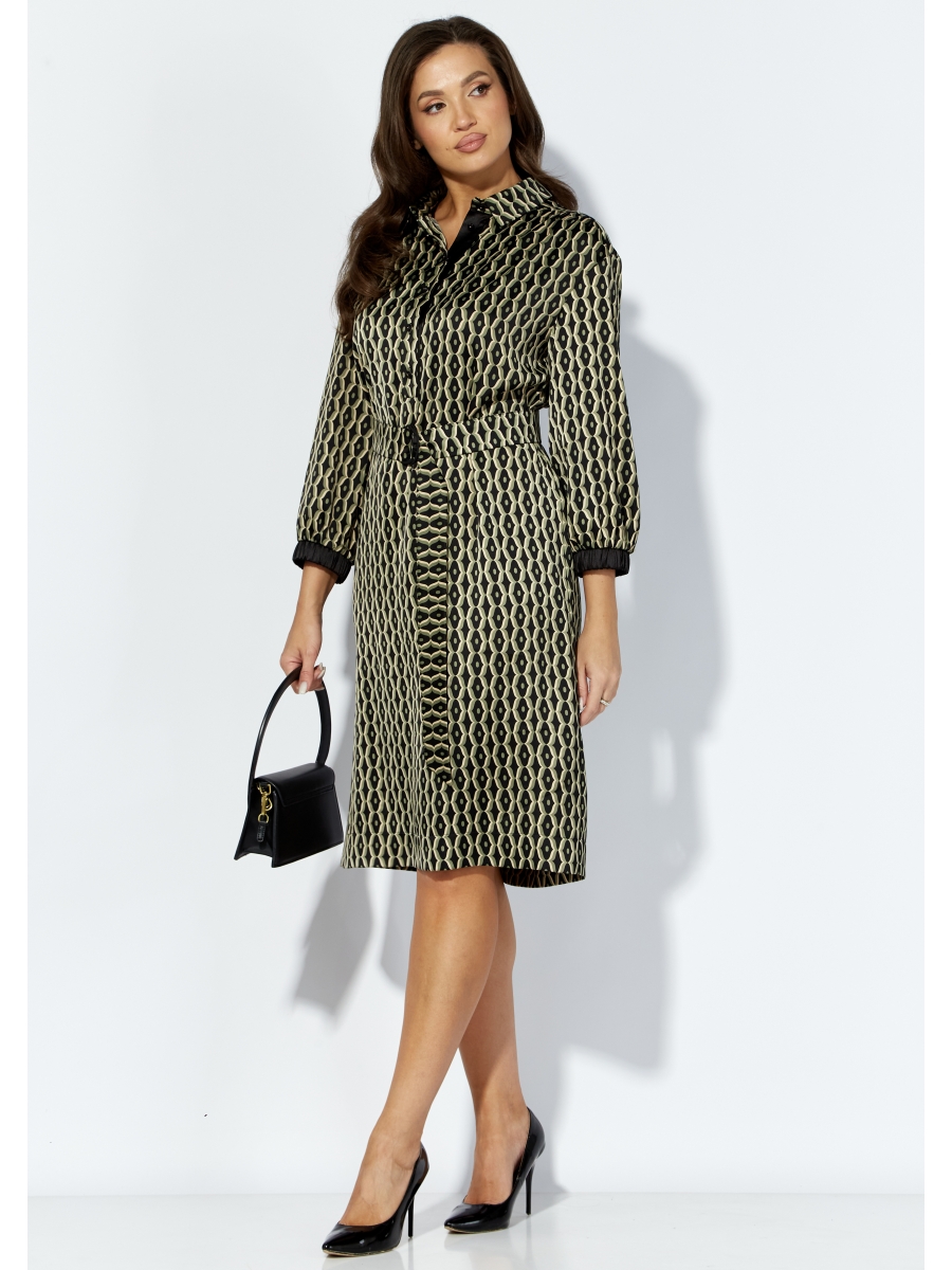 Оформить заказ →Платье женское, прямого силуэта с рукавом длинной 7/8. Рукав со спущенной линией плеча, по низу манжета с резинкой. Воротник рубашечный, на стойке. Застежка до линии талии, с отрезной планкой на петли и пуговицы. Из под кокеток переда и спинки-сборка. По боку платья, шлица. Линию талии подчеркивает съемный пояс с полукольцами.