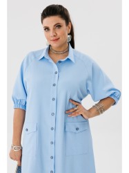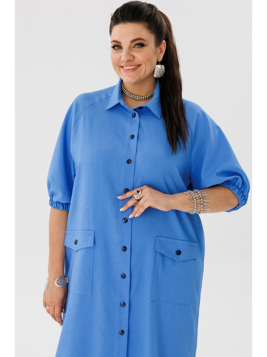 На модели в платье-рубашка цвета регата (синем) внизу платье 1472.1.