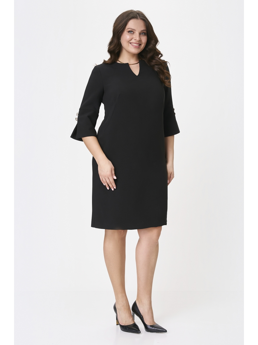 Женское классическое платье А-силуэта выполнено из натуральной плательной ткани. Вырез горловины округлой формы, рукава втачные 3/4 с манжетами и декоративными пуговицами , по спинке застежка на молнию и шлица. Платье полностью соответствует заявленному размеру.