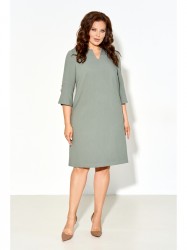 Женское классическое платье А-силуэта выполнено из натуральной плательной ткани. Вырез горловины округлой формы, рукава втачные 3/4 с манжетами и декоративными пуговицами, по спинке застежка на молнию и шлица.