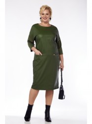 Эффектное, вместе с тем, прекрасно подходящее для повседневной жизни платье. Комфортный полуприлегающий силуэт мягко сядет по фигуре. По передней части изделия — мягкая и очень похожая на натуральную, эластичная экокожа. По спинке и на рукавах использован трикотаж с добавлением стрейча. По передней полочке карманы вставлены в декоративные швы. Вырез горловины "лодочка". Рукав реглан 7/8. Платье прекрасно сочетается с любыми украшениями и разной по стилю обувью.