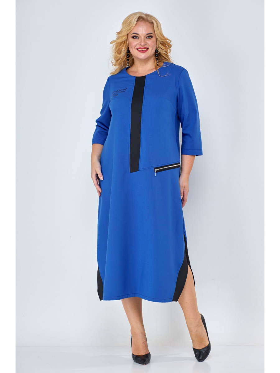 Платье в стиле casual предназначено для повседневной носки, прекрасно сочетается с любой по стилю обувью. Платье свободного кроя, ниже колена, рукав ¾. В качестве декора по переду изделия — вставлена планка из контрастной ткани, также имеется модный принт и имитация кармана, с декоративной молнией. По бокам изделия — разрезы, которые также обработаны контрастной тканью, в цвет декоративной планки.