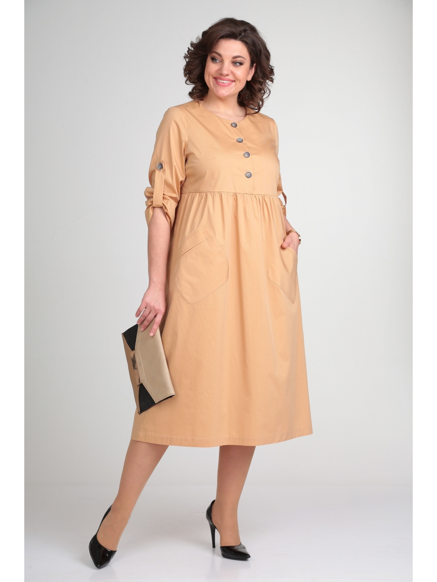 Повседневное женское платье из хлопковой ткани. Платье свободного кроя, с округлой горловиной, лиф и спинка отрезные, по переду функциональная застежка на пуговицы. Рукав 3/4, фиксируется на пату, застегивающуюся на пуговицу. Нижняя часть платья с небольшой сборкой, по переду юбки два накладных функциональных кармана. Платье – универсально, в нем можно выглядеть очаровательно и романтично на прогулке, практично и деловито в офисе. Натуральный состав, классическая длина и силуэт — сделают это изделие любимым в наступающем сезоне. Платье прекрасно сочетается с разной по стилю обувью. Изделие подойдёт на рост 170 см.