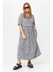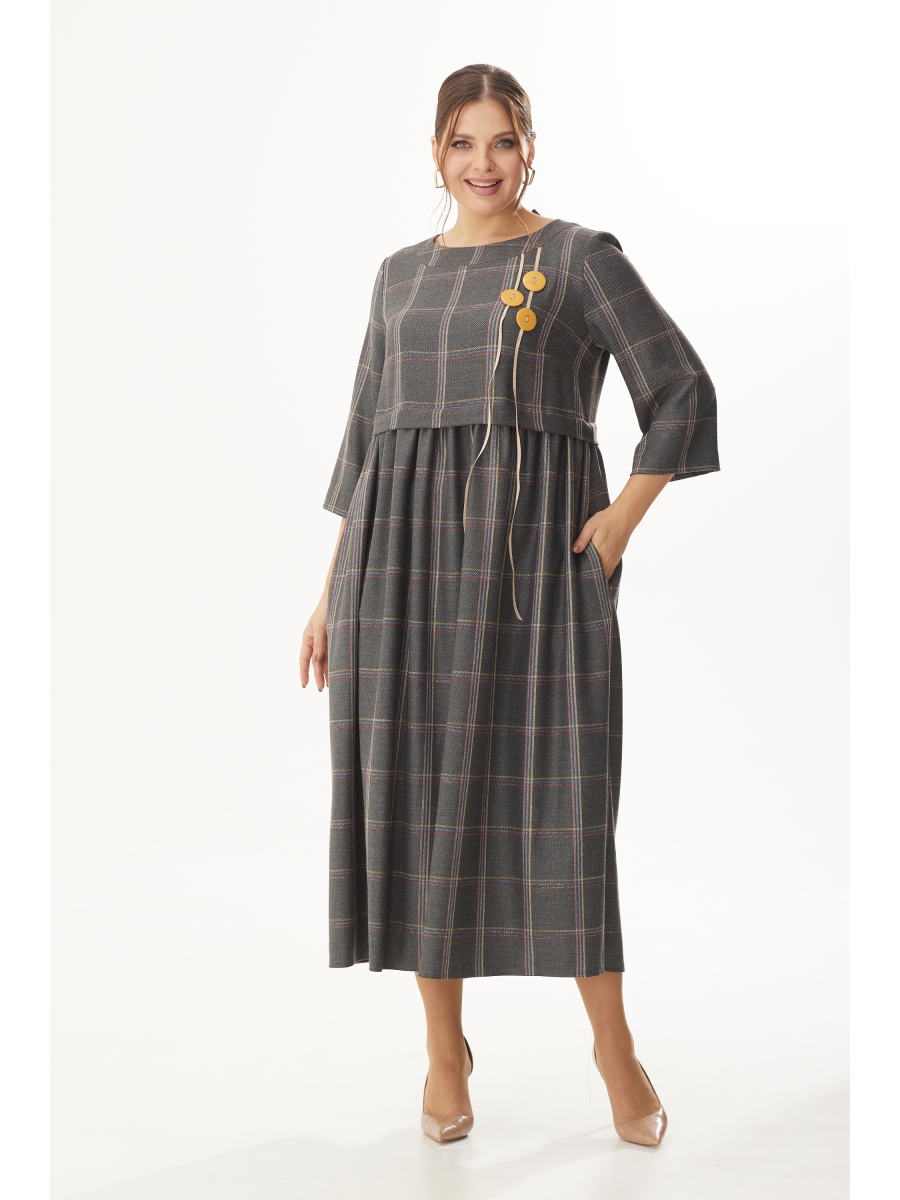 Актуальное длинное платье оригинального кроя - отличное решение для межсезонной погоды, для будней и для торжеств. Платье выполнено из мягкого трикотажа средней плотности. По переду изделие украшено декоративными завязками с пуговицами. Верх изделия с завышенной талией, округлой горловиной и втачным рукавом 3/4. Верх горловины на спинке украшен декоративной завязкой. Низ платья свободного летящего кроя с боковыми карманами, по талии сборка.