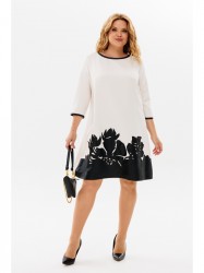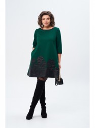 Универсальное женское платье, которое смело можно носить как в офис, так и на торжество. Выполнено из вискозного трикотажа, украшенного настрочной вышивкой «цветы» из эко кожи. Платье трапецевидного силуэта, длиной выше колена, с втачным рукавом 3/4. Спинка цельная с застежкой в горловине на декоративную молнию. Низ рукава и горловина обработаны бейкой из эко кожи. В боковых швах имеются карманы. Платье подчеркнет Ваши достоинства и не будет сковывать движения. Оно прекрасно дополняется различными аксессуарами. Длина изделия по спинке 93см+-1 см, длина рукава от плечевого шва 47см+-1 см.