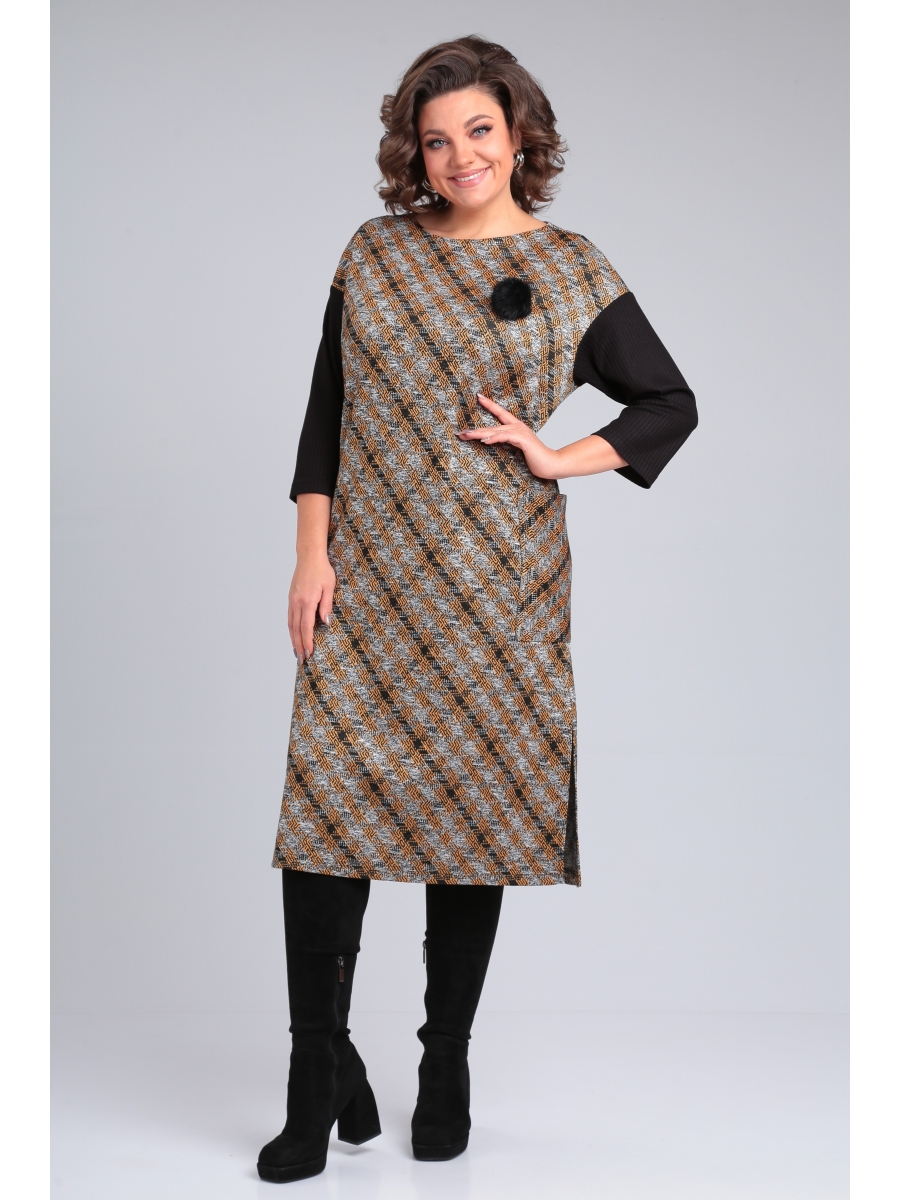 Эффектное, вместе с тем, прекрасно подходящее для повседневной жизни платье. Комфортный, прямой силуэт мягко сядет по фигуре и не будет сковывать Ваших движений. Платье выполнено из приятного на ощупь трикотажа, имеет спущенный рукав, котрый выполнен из контрастной ткани; сбоку изделия - карман. Украшением платья служит боковой разрез, а также брошка, которая идет в комплекте. Платье прекрасно сочетается с разной по стилю обувью.