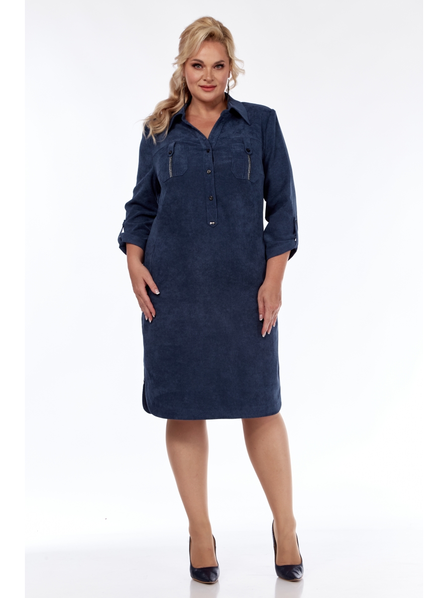 Современное вельветовое платье в стиле сафари - отличный выбор для Вашего гардероба в любое время года. Платье слегка расширено к низу. На переде обработаны два кармана c листочками, два накладных кармана в области груди с отделочной тесьмой, застёжка на 3 петли и пуговицы. Спинка слегка удлинена по отношению к переду, боковой шов с отделочной вставкой, декорированной тесьмой с полукольцом, и полукруглыми разрезами внизу. Рукав втачной, одношовный, внизу присобран патой. Воротник стояче-отложной со стойкой. Материал тянется.