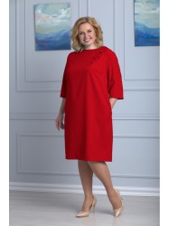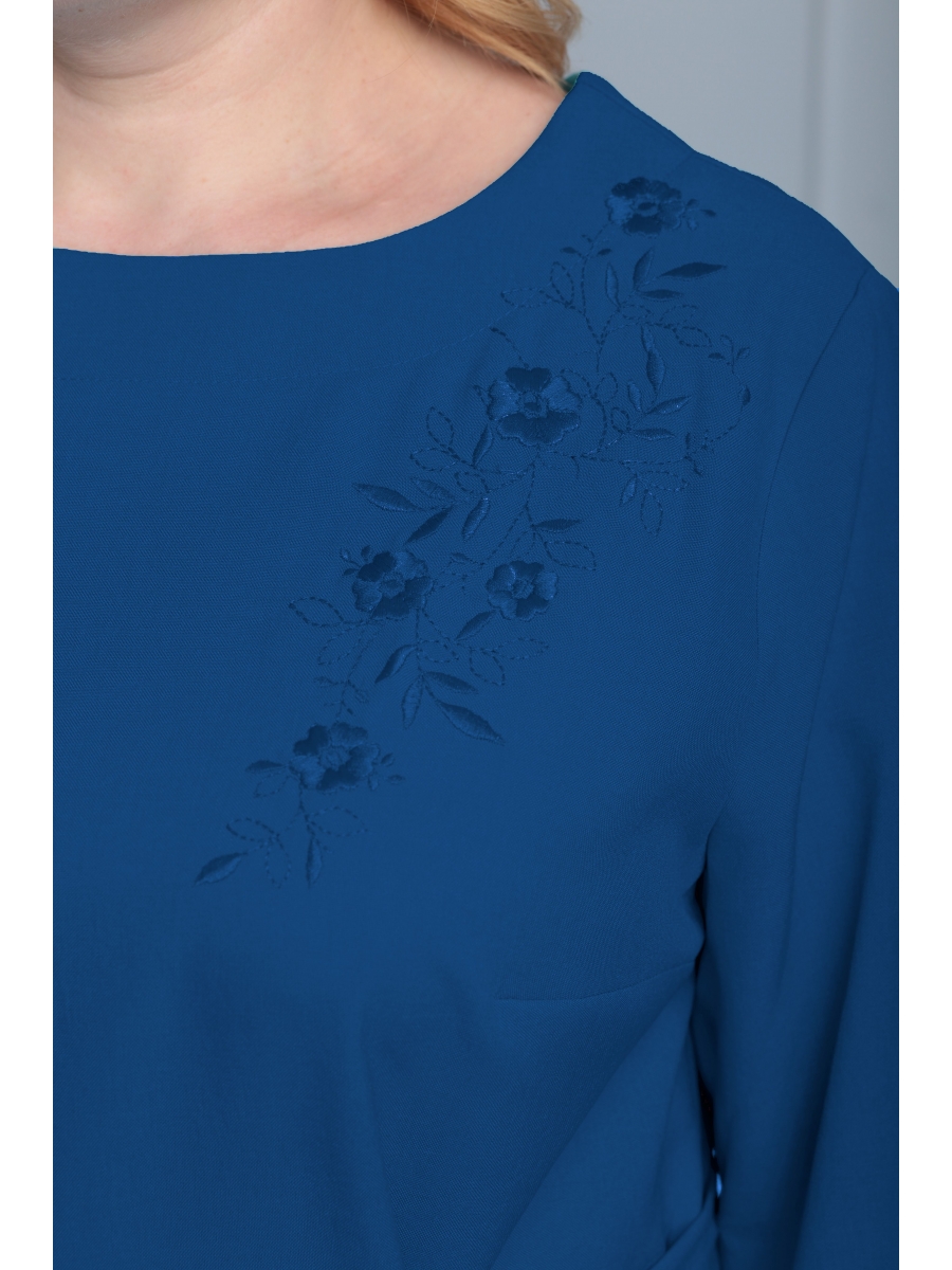 Платье прямого силуэта , рабочие карманы в боковых швах платья;вырез горловины круглый.. Спинка с застежкой пуговицами по среднему шву платья. Декорировано фигурной вышивкой по плечу.