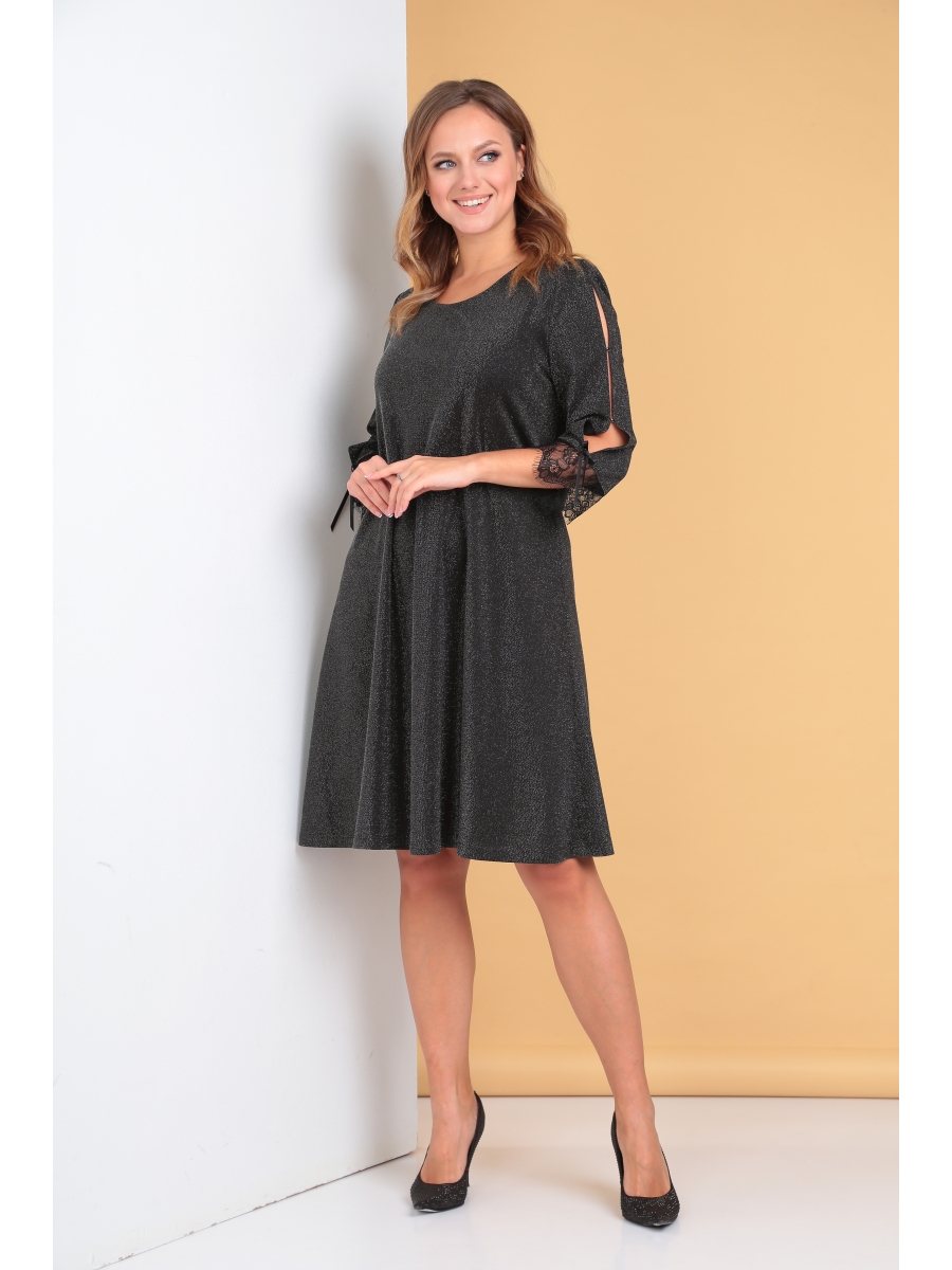 Нарядное платье из мягкого трикотажа с мерцающим блеском - идеальный вариант для праздничного вечера. Материал красиво переливается при попадании света. А-силуэт позволит Вам чувствовать себя максимально комфортно в череде праздничных событий.