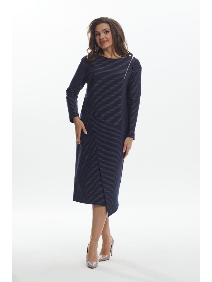 Оформить заказ →Платье женской свободного силуэта зауженной книзу. Спинка со средним швом. По переду подрез ниже линии талии и подрез по левой нижней стороне, переходящий в шлицу. Слева из линии плеча декоративная молния. Линия низа по переду фигурная. Платье без подкладки