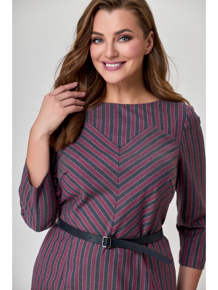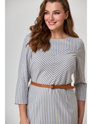 Платье женское полуприлегающего силуэта, длиной до колена. Рукав втачной, длина 3/4. Горловина в форме лодочки, обработана обтачкой. По переду фигурная кокетка. Прилегание достигнуто при помощи талиевых вытачек. Потайная застежка молния в левом боковом шве. Интересная игра с полоской, простой дизайн, лёгкость и женственность, в платье вы будете чувствовать себя на все 100.