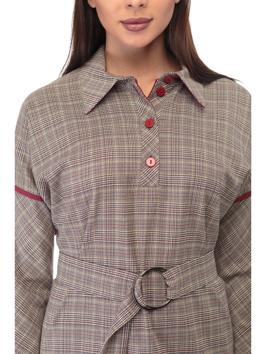 Актуальный покрой рукава - цельнокроенный "летучая мышь", придаёт шарм и мягкость образу. Швы украшены отделочными кантами. По переду выполнена втачная планка с застёжкой на петли и пуговицы. Воротник сорочечного типа . Платье дополняется съёмным поясом.