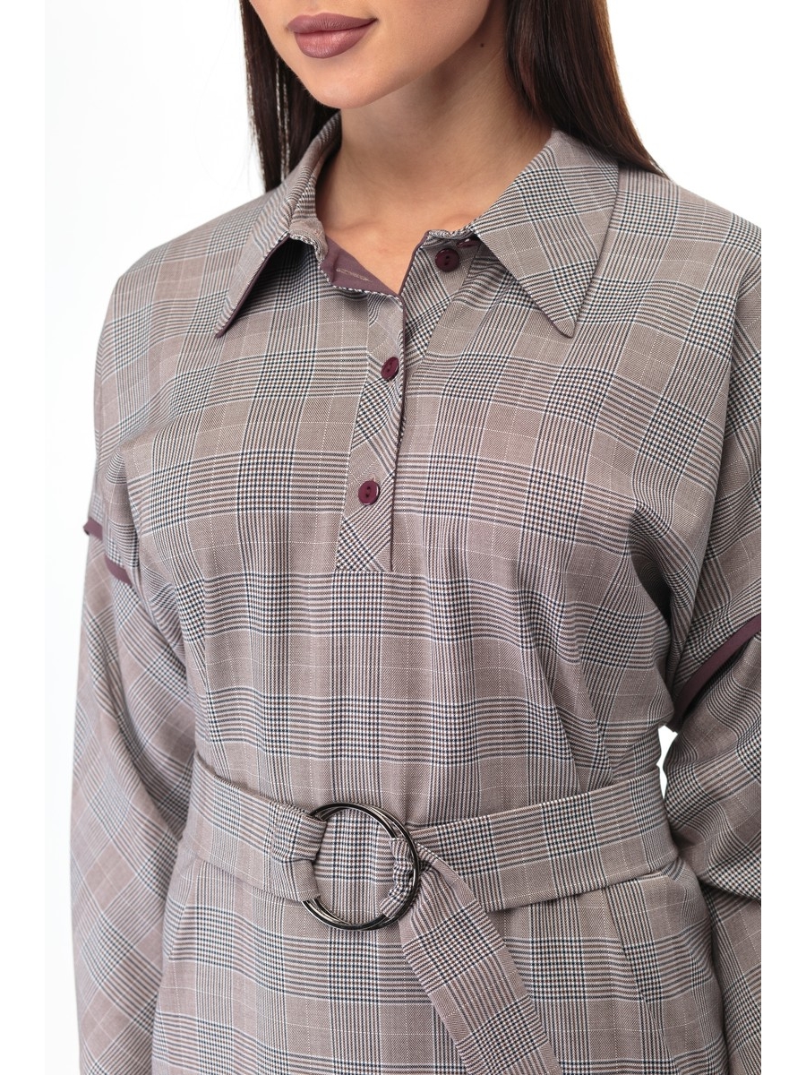 Актуальный покрой рукава - цельнокроенный "летучая мышь", придаёт шарм и мягкость образу. Швы украшены отделочными кантами. По переду выполнена втачная планка с застёжкой на петли и пуговицы. Воротник сорочечного типа . Платье дополняется съёмным поясом.