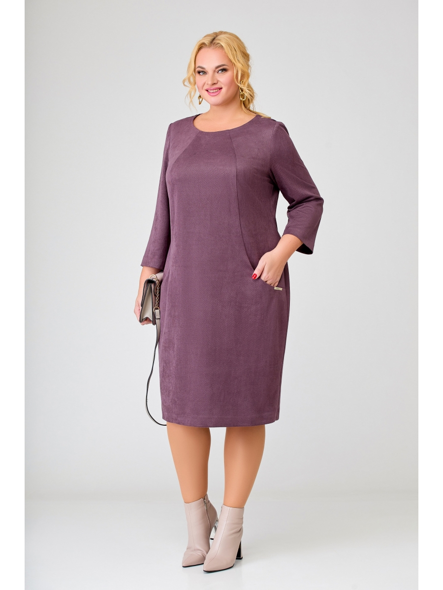 Платье женское полуприлегающего силуэта, выполнено из турецкого трикотажного полотна, с напылением. Горловина круглая, рукав втачной одношовный, длина рукава ¾. Перед с фигурными карманами, выходящими из рельефов. Спинка цельнокроеная, с талиевыми вытачками.
