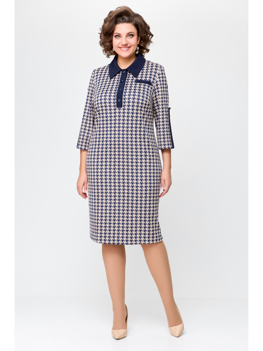 Платье женское полуприлегающего силуэта из трикотажного полотна с дизайном «гусиная лапка».