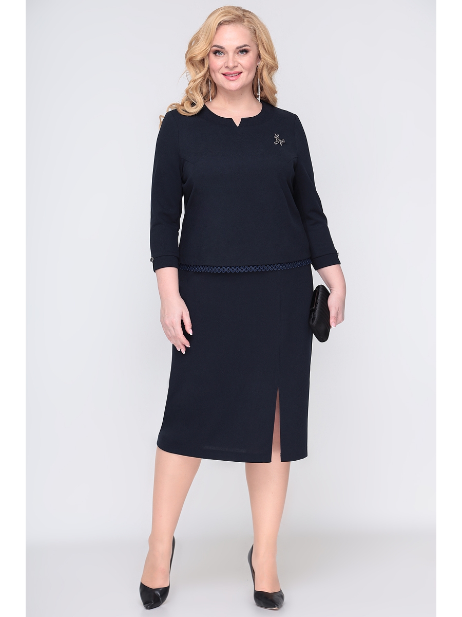 Оформить заказ →Нарядное женское платье полуприталенного силуэта из трикотажной ткани, универсальное и практичное, длиной ниже колена. Внешне оно смотрится как костюм, потому что верхняя часть спинки и переда отлетные. Платье из такой ткани не сковывает движения, в нём вы будете чувствовать себя комфортно в течении всего дня. По верхней части спинки платья есть имитация застёжки с заходом и пришиты 4 пуговицы, а нижняя с талиевыми вытачками, средним швом. На верхней части переда платья есть нагрудные вытачки, а в нижней в левой по низу - разрез. Вырез горловины фигурный, декорирован съемной брошью. Рукав втачной, двухшовный ¾, по низу есть манжет, который декорирован пуговицей. Верхняя часть платья на трикотажной подкладке. По низу верхней части платья пришито кружево. Комфортная модель на любой случай.