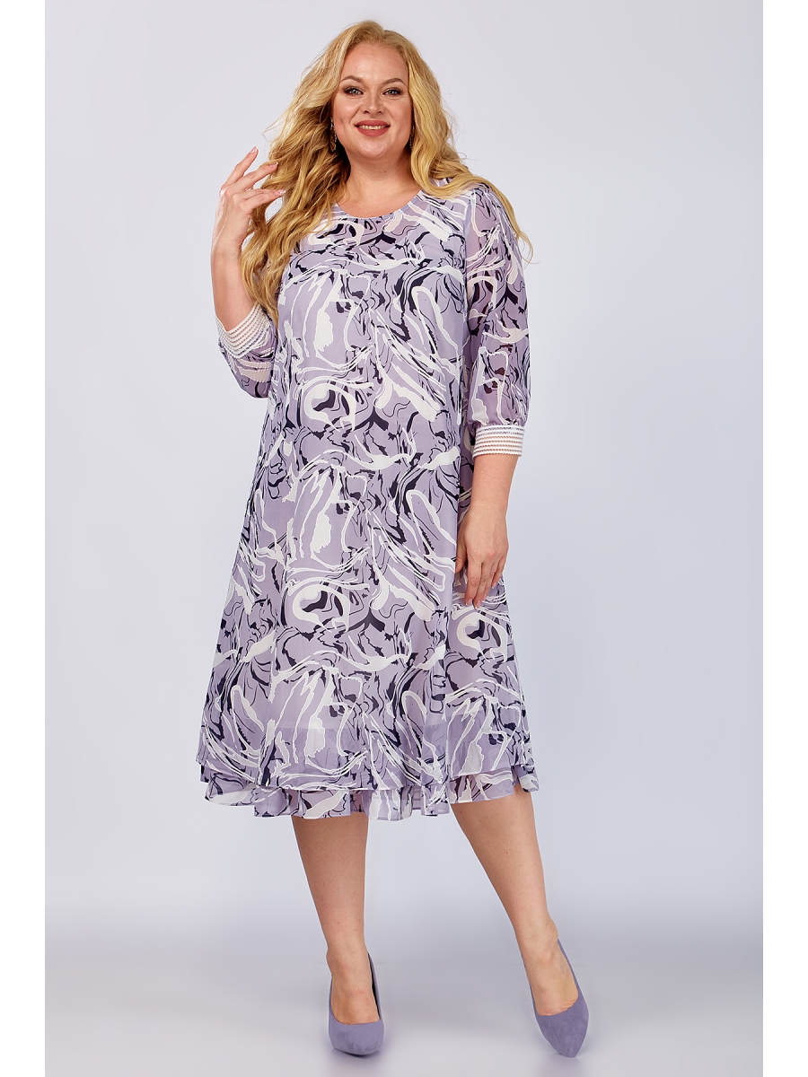 Элегантное платье из шифоновой ткани с оригинальным абстрактным принтом. Горловина овальной формы, нагрудные вытачки направлены от бокового шва к центру груди, спинка со средним швом и каплевидной застежкой на пуговице. Низ платья обрамляет волан, наполняя образ воздушной многослойностью. Рукав втачной, одношовный, низ рукава собран на эластичную декоративную тесьму. Платье на трикотажной подкладке. Нарядное платье, в котором Вы будете выглядеть женственно и романтично. К платью прилагается съемный пояс.
