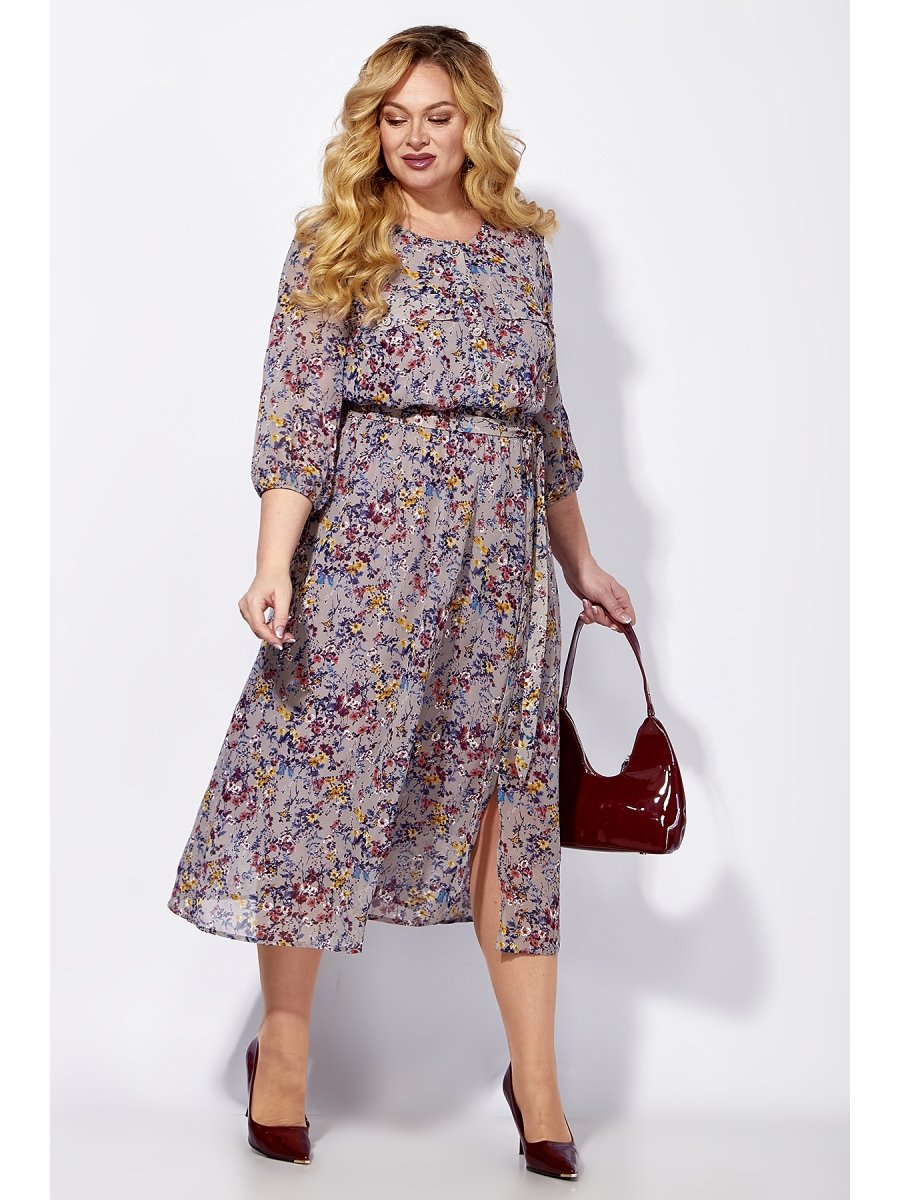 Шифоновое в цветочный принт платье - незаменимая вещь в гардеробе современной модницы. Расширенное к низу платье прямого силуэта на резинке по линии талии прекрасно скрывает нюансы фигуры и подчеркивает достоинства. На платье по рельефу переда юбки обработан разрез. Рукав длиной чуть ниже локтя, низ рукава на резинке. В комплект к платью входит сьёмный пояс. Длину изделия можно отрегулировать благодаря подрезу с резинкой на талии. Платье шикарно будет смотреться как с туфлями на каблуке, так и с кедами. Меняйте свой образ в зависимости от настроения и носите его как классическое, офисное, или как вечернее платье! Такое платье на любой случай просто просится в Ваш гардероб!