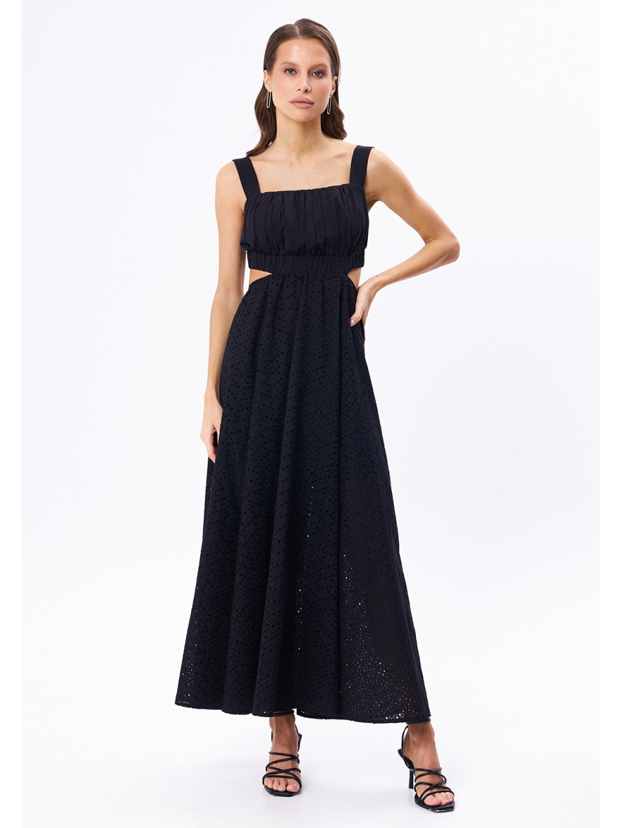 Оформить заказ →Хлопковый сарафан длины макси из однотонной ткани в сочетании с ришелье. Лиф выполнен по принципу бюстгальтера с застёжкой на спине на металлическую пряжку. Юбка на резинке по талии и с потайной молнией в боковом шве для удобства.