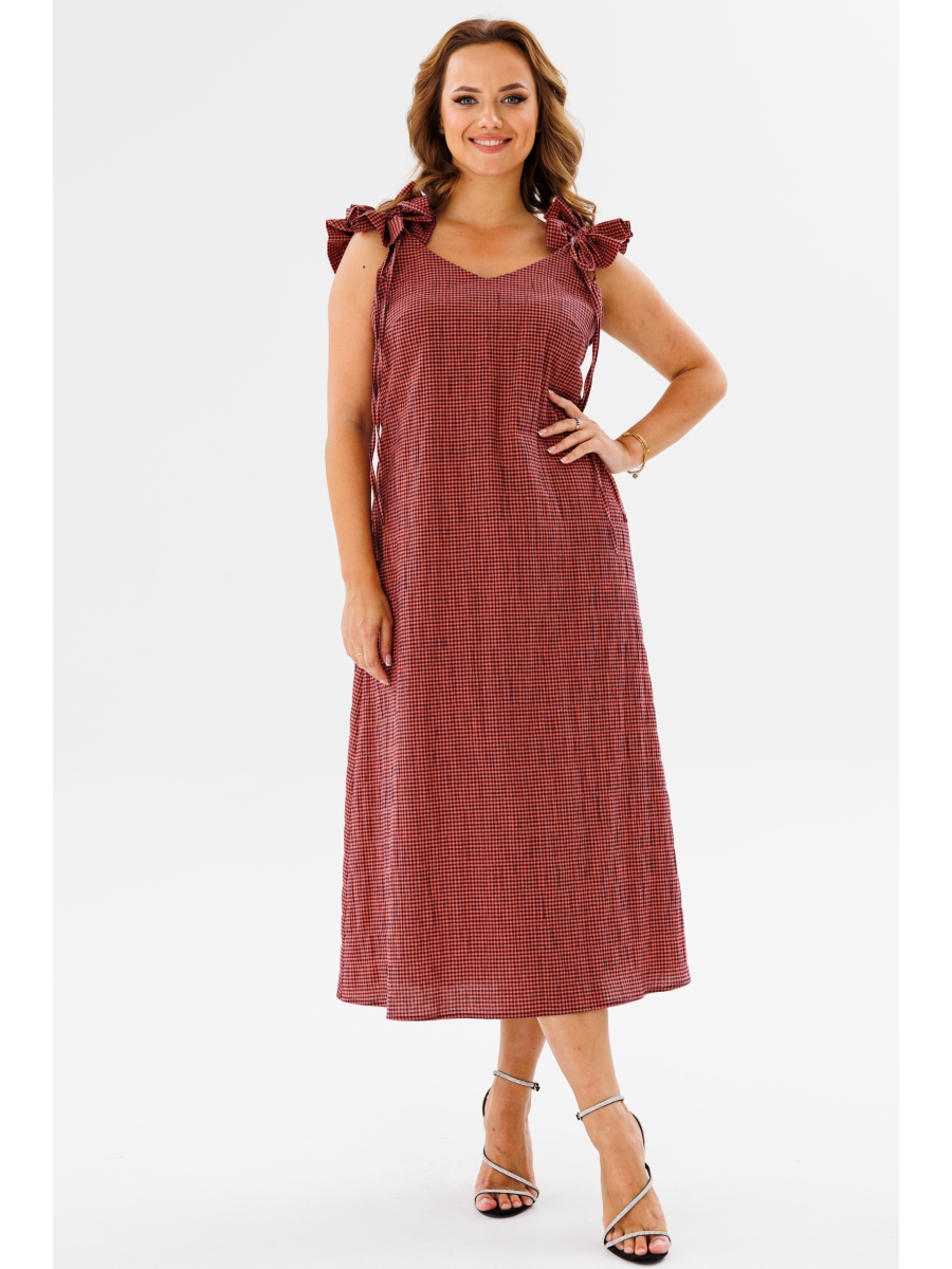 Игривое летнее платье-сарафан - идеальное сочетание женственности и легкости. Платье из хлопковой ткани обеспечит комфорт и свежесть даже в жаркую погоду. Забавные рюши и привлекательная клетка придадут Вашему образу непринужденность и романтичность. Сарафан отлично подойдет для встреч с друзьями, романтических прогулок и летних путешествий.