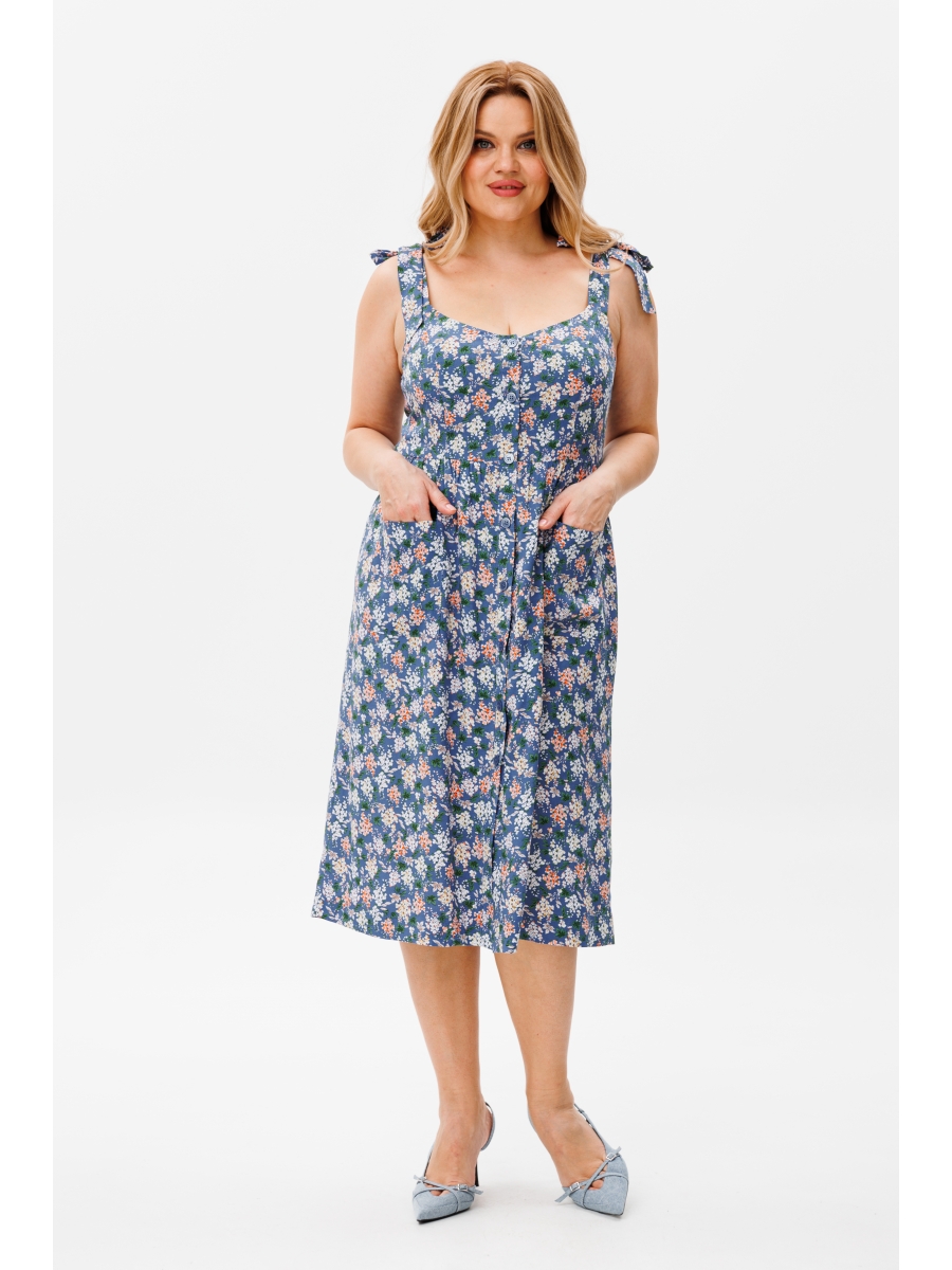 Нарядный и в то же время относительно простой летний сарафан, выполнен из легкой вискозы. Полуприлегающий силуэт и натуральная ткань обеспечат комфортную носку даже в самые знойные дни. Застёжка на пуговицах. Юбка имеет небольшую сборку по линии талии. По бокам два накладных кармана. Благодаря завязкам на плечах прекрасно отрегулируется на любой рост. Универсальный крой, сочетающийся как с туфлями, так и с кедами.