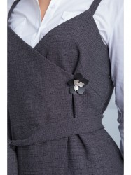 Передние половинки имеют увеличенную линию полузаноса,геометрически скошенную к низу.Левая половинка переда соединена с боковым швом,правая отлётная.Сьемная брошь является застежкой.Спинка со средним швом,застежка на скрытой молнии в левом боковом шве.