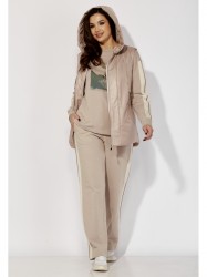 Брюки прямые с карманами в боковых швах. По низу небольшой разрез. Пояс притачной с резинкой (по центру гладкий). По бокам брюк и по центру рукавов втачные отделочные лампасы с контрастным кантом.