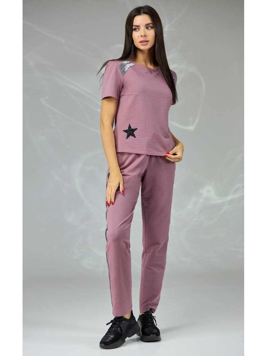 Стильный спортивный костюм из мягкой ткани. Состоящий из 2 предметов: футболки и брюк.