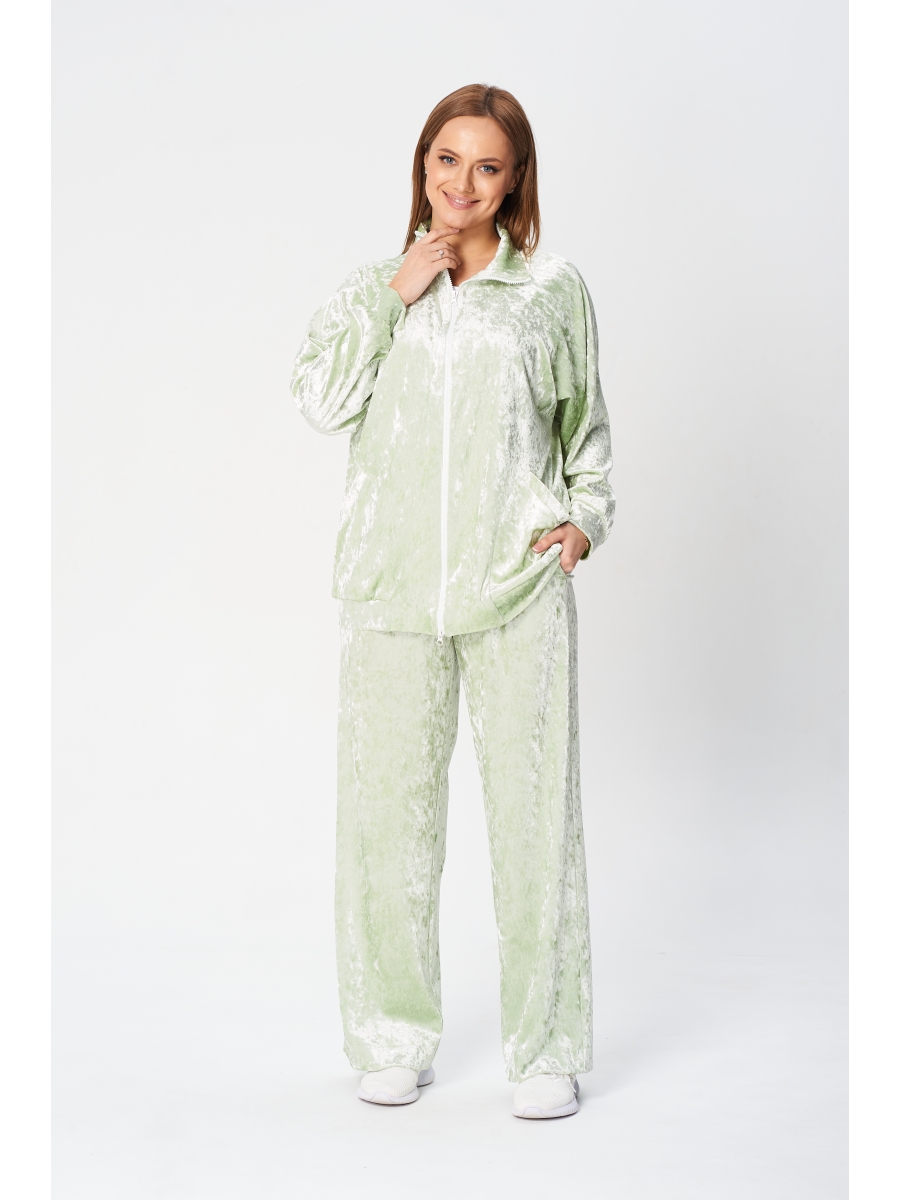 Комплект женский в спортивном стиле состоит из бомбера и брюк, выполнен из велюра на трикотажной основе с краш эффектом.