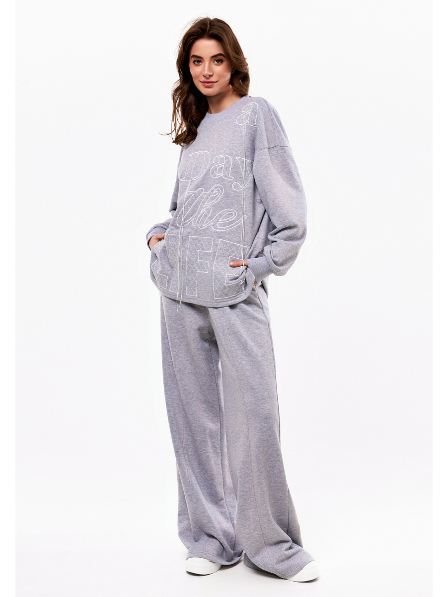 Объёмный джемпер из футера 3-х нитки с довязами на манжетах и по горловине. По переду контрастная вышивка.