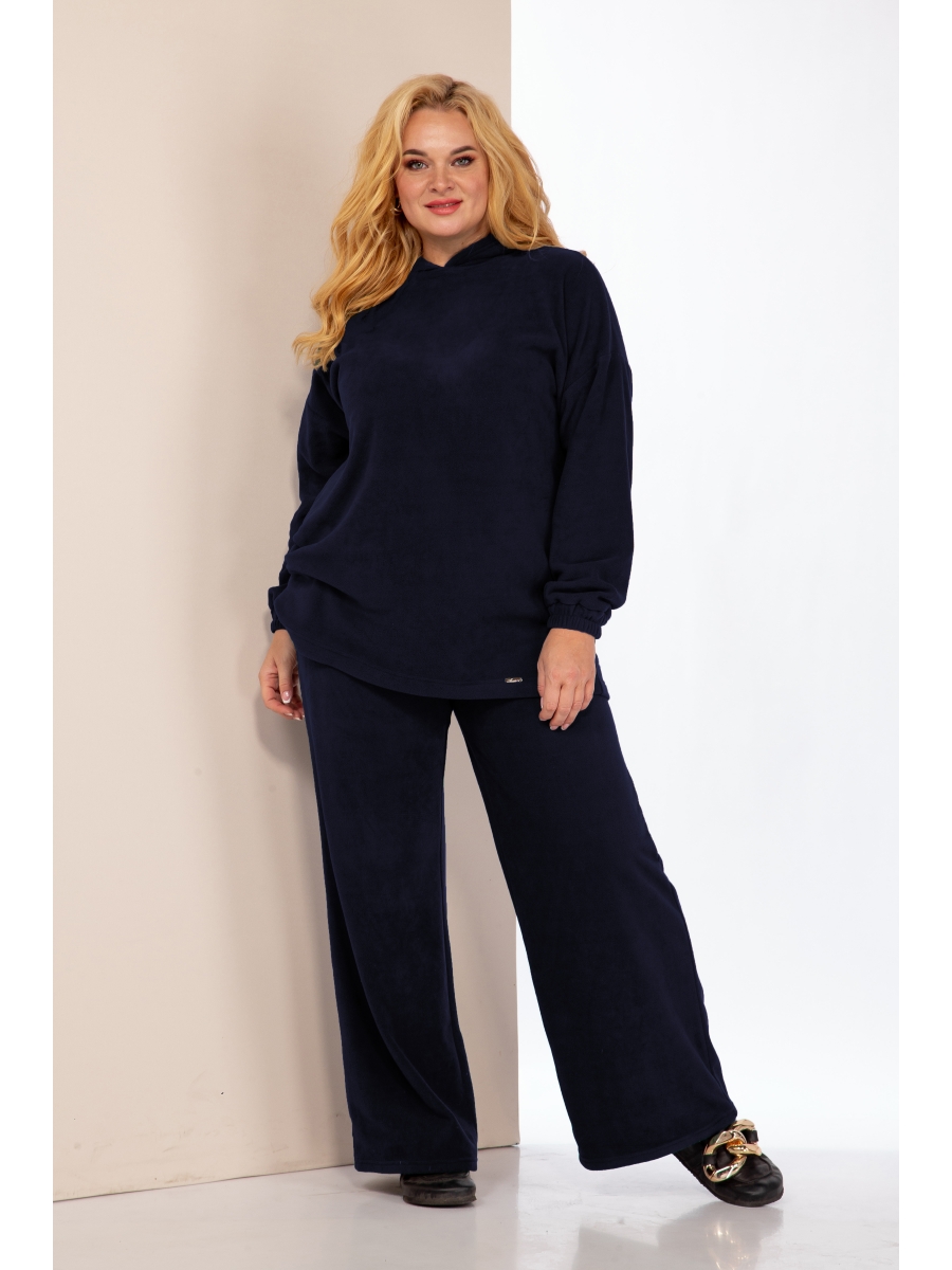 Брюки прямые, пояс на резинке. По низу джемпера пришит металический логотип бренда.
