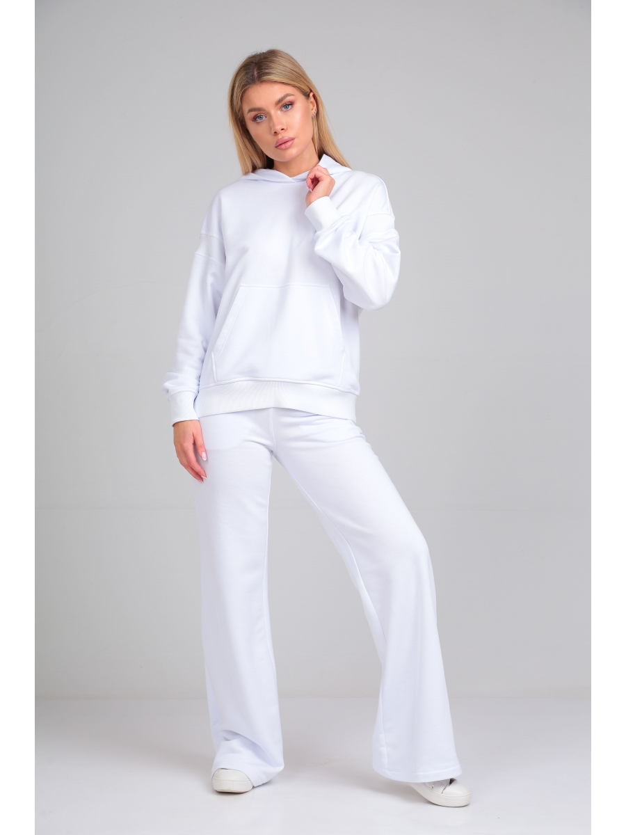 Женский костюм выполнен из хлопкового футера 3ех нитка. Стильное объёмное худи, удлиненное сзади, с капюшоном, имеет приспущенный рукав и украшен декоративной вставкой из кашкорсе в цвет изделия, также по переду настрочной карман-кенгуру. Манжеты на трикотажном довязе-кашкорсе в цвет изделия. Брюки клешеные высокой посадки с боковыми карманами, пояс на резинке, по низу брючины сбоку вставлена потайная молния для того, чтобы регулировать высоту разреза. Оба изделия отличаются своей функциональностью и их можно с легкостью комбинировать с различными вещами и обувью Вашего гардероба. Рост модели на фото 171 см.