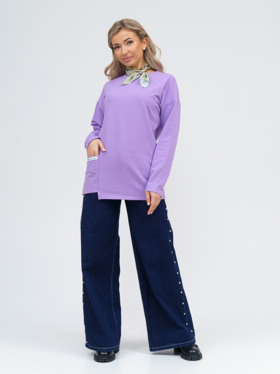 Туника женская из мягкого трикотажного полотна «футер». Модель прямого силуэта, свободного покроя. длина изделия чуть ниже уровня бедра. Полочка с ассиметричным низом. По горловине обработана бейка. С левой стороны по линии подреза обработан карман. Прекрасный вариант стильной туники на каждый день для энергичной девушки, любящей выглядеть эффектно, не отказываясь от комфорта.