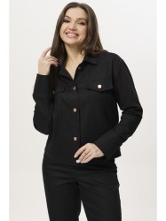 Полочка с рельефами, застежка на петли и пуговицы, выполнена на притачной планке. Воротник рубашечного типа. Полочка и спинка с кокеткой, на спинке дизайнерская вышивка. Рукав втачной, одношовный, по низу рукава широкая притачная манжета, линия плеча спущена.