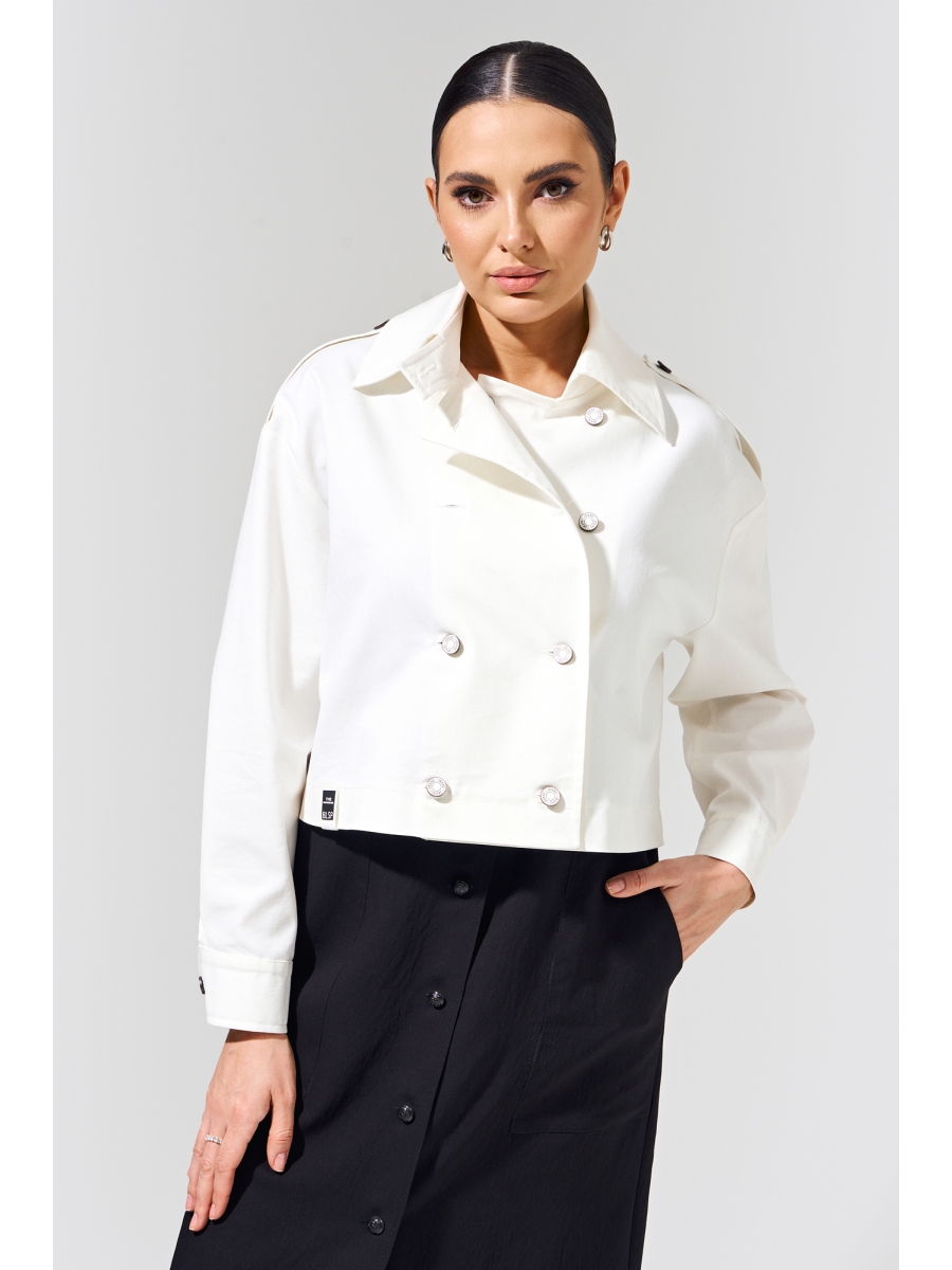 Оформить заказ →Стильная джинсовая двубортная куртка без подкладки со спущенной линией плеча и декоративной патой застегивается на джинсовые пуговицы-болты.
