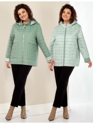 По переду, однотонной стороны изделия, стёжка квадратами и функциональные, накладные карманы на молнии. Капюшон съемный на пуговицах, регулируется при помощи кулиски. Рукав втачной, двухшовный, длина регулируется с помощью отворота.