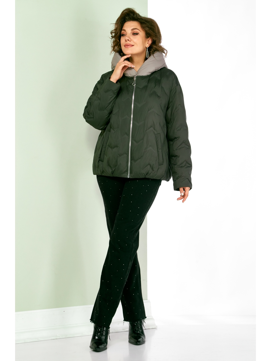 Капюшон не съемный. Спинка цельная. Низ изделия на регулируемой кулисе и с легкими защипами. Утеплитель «облегченный холлофайбер» (специально разработан для демисезонных курток) производство Бельгия с плотностью 110г/кв.м.