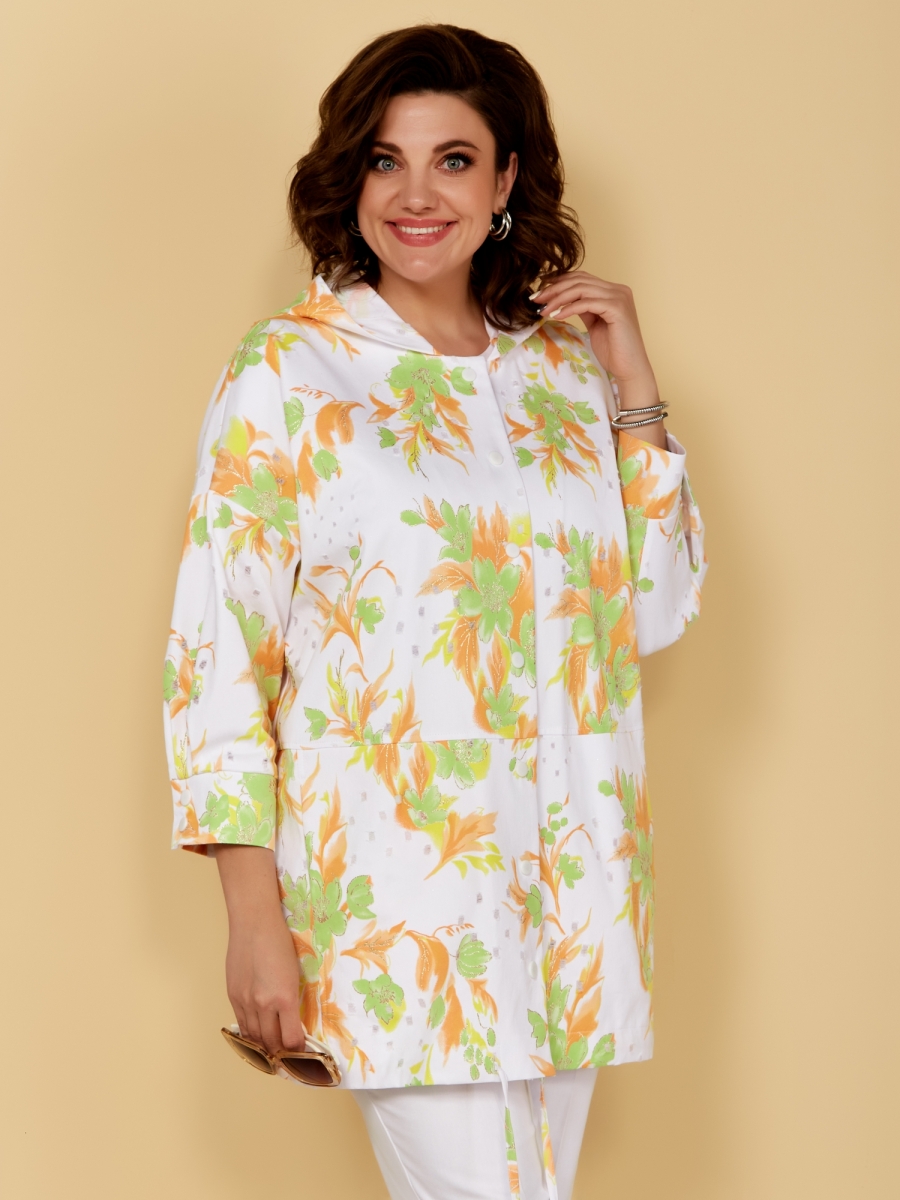 Оформить заказ →Куртка удлиненная, прямого силуэта, типа "оверсайз", с застежкой на кнопки, со спущенными плечами и рукавом 3/4, карманами в швах, с капюшоном. Куртка без подкладки.