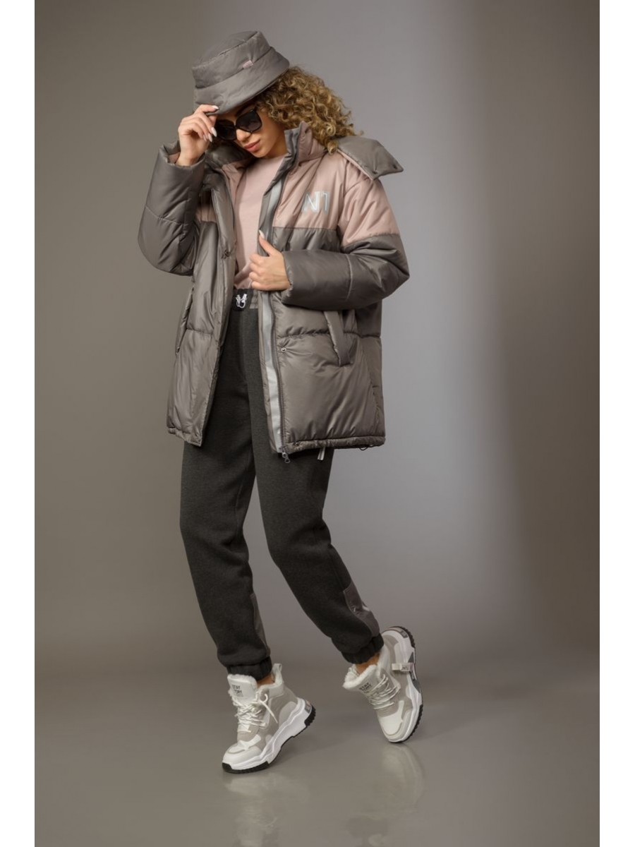 Оформить заказ →Куртка свободного силуэта из двух цветов плащевой ткани на синтепоне «Изософт». Застежка центральная на молнию. По кокетке переда, воротнику и декоративной детали застежки - светоотражающая печать. Рукав - спущенное плечо, внутри манжет-довяз. Карманы на полочке прорезинены.