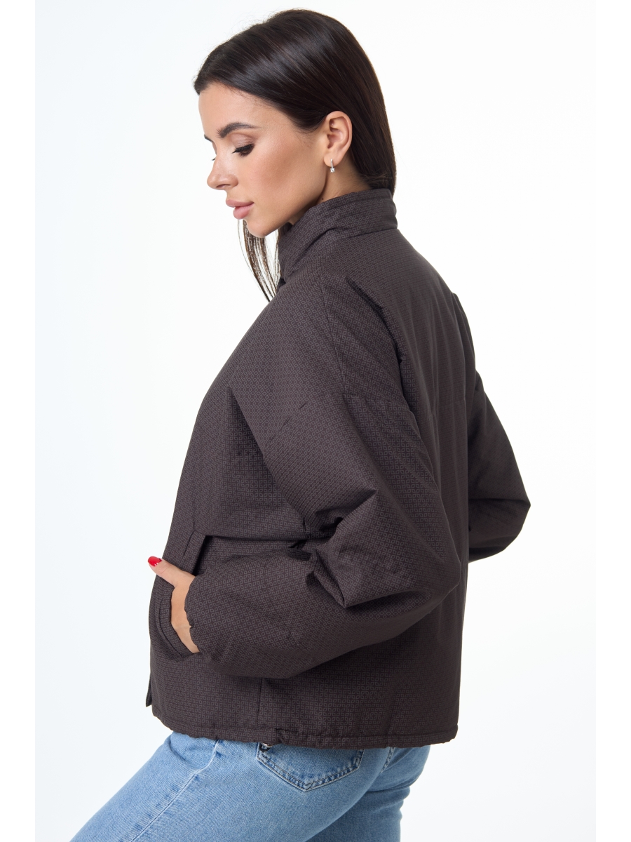 Куртки – любимица всех модниц. Мало какой предмет женского гардероба отличается такой же практичностью, универсальностью и функциональностью. Достаточно объёмная модель с удлинённой линией плеча, широкими рукавами и воротником – стойка. Простегана тонким утеплителем. Низ – на регулируемой резинке.