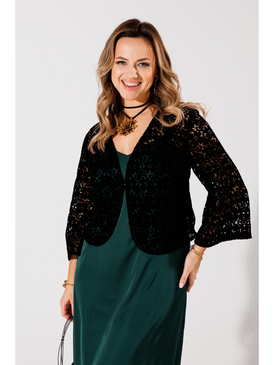 Жакет на бархатной основе которого расположены утонченные узоры кружева, создавая игривый и женственный акцент. Это болеро идеально дополнит любое платье, превращая повседневный наряд в утонченный вечерний образ.