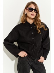 Полупальто свободного силуэта на подкладке; рукава реглан, переходящие в кокетку, по низу дополнены мягкими вытачками, придающими небольшой объем; по переду накладные функциональные карманы; воротник-стойка; по низу спинки притачной пояс частично на резинке. Застежка на металлические кнопки. Полупальто полностью соответствует заявленному размеру.