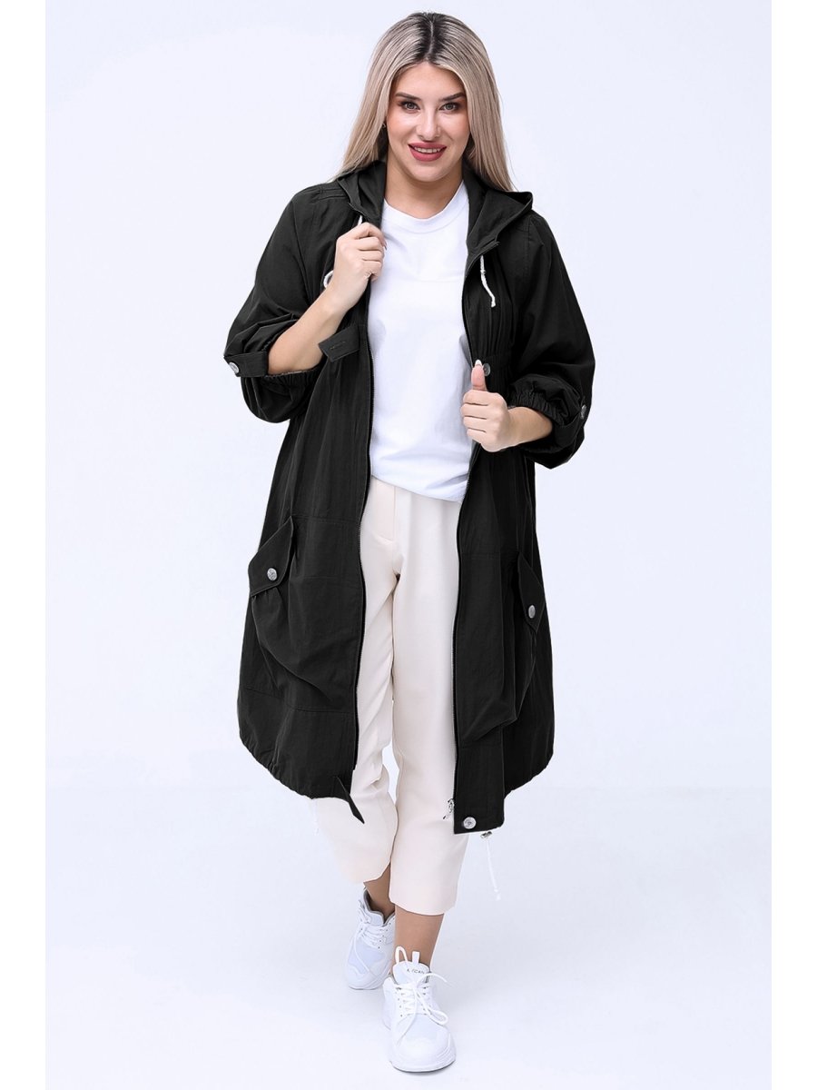 Оформить заказ →Стильная парка трапециевидного силуэта из хлопковой однотонной ткани. Круглый вырез горловины дополнен шлемовидным капюшоном со шнуром и фиксаторами. По переду - центральная застежка на тесьму-молнию с дополнением в виде пат сверху, снизу и на уровне груди. Длинные втачные рукава, с широкой резиной по низу и патой. Модель с большими, двойными накладными карманами, удобно расположенными ниже линии бедер. Вход в карман оформлен небольшой сборкой и клапаном с пуговицей. По переду над грудью и по спинке, на уровне лопаток - прилегание за счет кулиски на широкой резинке. Спинка со швом по центру, оканчивающимся патой и разрезом. Низ асимметричный дополнен шнуром и фиксаторами.