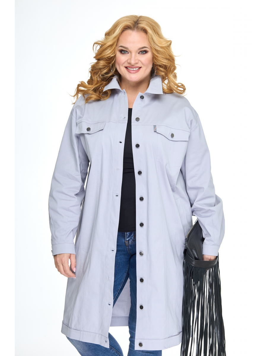 Прямой силуэт, спущенная линия плеча, втачной двухшовный рукав с притачными манжетами. По переду кокетки, в шве притачивания которых расположены функциональные карманы с клапаном. Воротник рубашечного типа. Застёжка на металлические пуговицы-болты по всей длине. В боковых швах - внутренние карманы .По спинке притачная кокетка с элементом декора. Низ изделия с притачной деталью и регулируемыми патами на пуговицах-болтах.