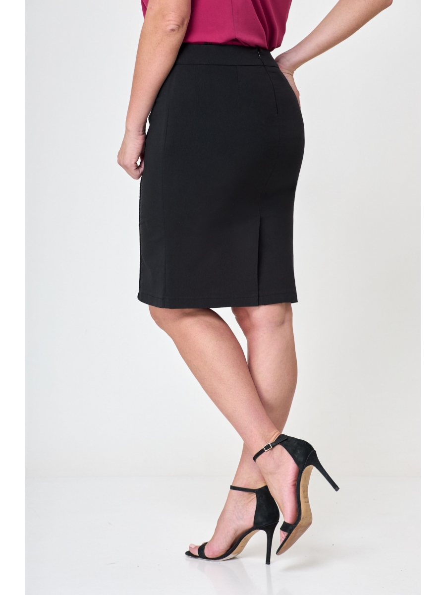 По переду вертикальные рельефы декорированные кантом. По спинке талиевые вытачки, в среднем шве потайная застежка молния до верха притачного пояса и шлица, для вашего комфортного передвижения. С подкладкой. Юбка считается отличной базой и благодаря декоративным элементам не выглядит скучно, придавая образу изюминки.