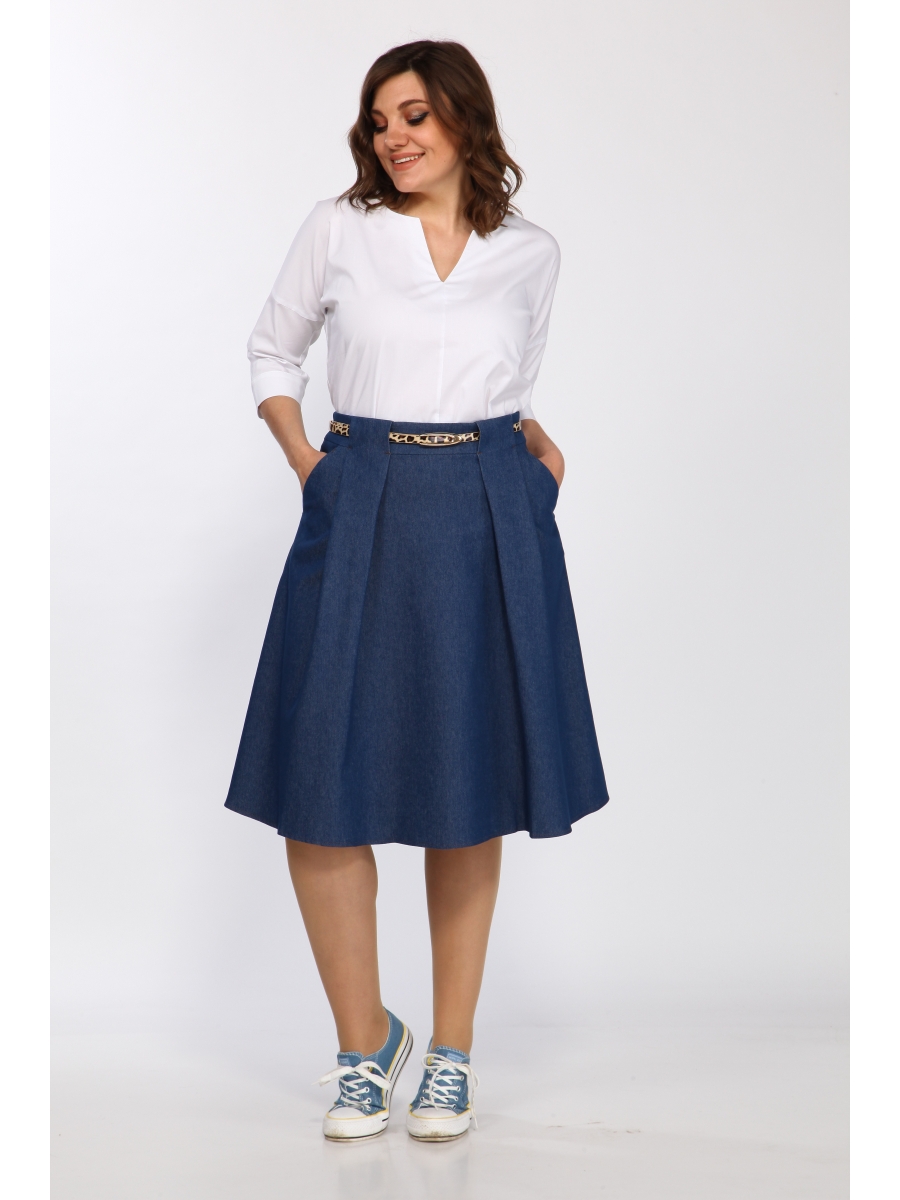 Юбка полуклешь с двумя складками спереди и по спинке.Передняя часть цельнокроенная,по спинке в центральный шов вставлена застежка металическая молния длиной 18см цвет оксид.По передней части выполнены боковые карманы с отрезным бочком.Юбка без подкладки.Бережная стирка при 30 градусах.