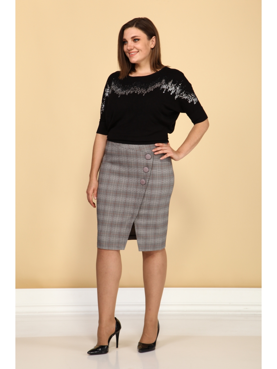 Оформить заказ →Юбка карандаш. Ткань текстиль в мелкую клетку. Цвет серый и тонкие клетки красного цвета. Очень приятная на ощупь. Хорошо тянется. По спинке центральный шов, вверху застежка потайная молния и внизу шлица. По переднему полотнищу небольшой разрез, три пуговицы диаметром 3 см. Юбка на подкладке. Бережная стирка при 30 градусах!