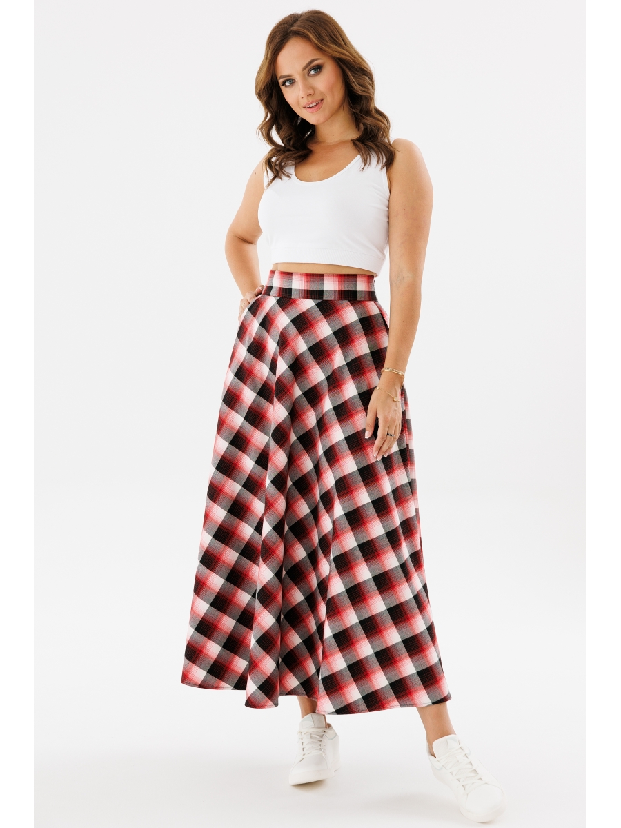 Эффектная женская юбка из плательной ткани в клетку - универсальная одежда на все случаи жизни. Юбка кроя полусолнце с легкостью впишется в любой образ, добавив нотку женственности и романтики. Она прекрасно комбинируется с вещами в классическом стиле или повседневном casual стиле. Струящаяся ткань скроет недостатки фигуры и эффектно выделит достоинства.