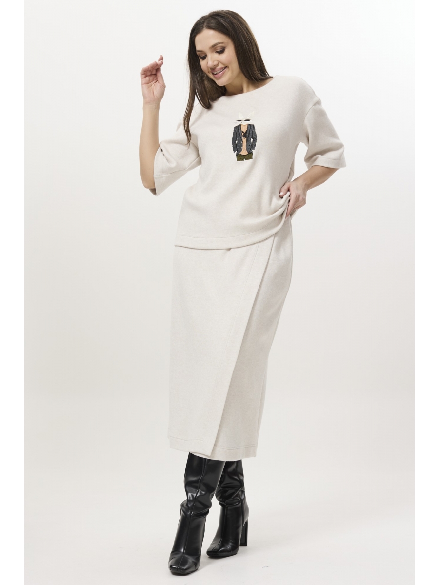 Юбка будет идеально смотреться с нашим ждемпером 1064 (на фото) или оба изделия можно купить костюмом 3036.
